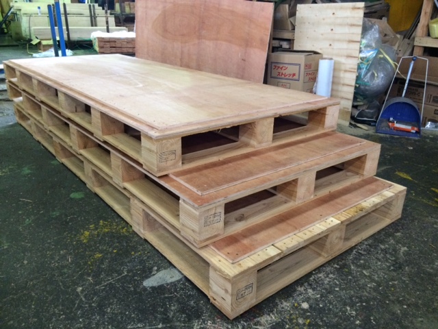 国内出荷用・海外輸出用・製品保管用など様々な仕様のパレットを設計・製造いたしております。 輸出用には熱処理木材のほかに、LVLや合板などを使った特殊な仕様のパレットも製造しております。